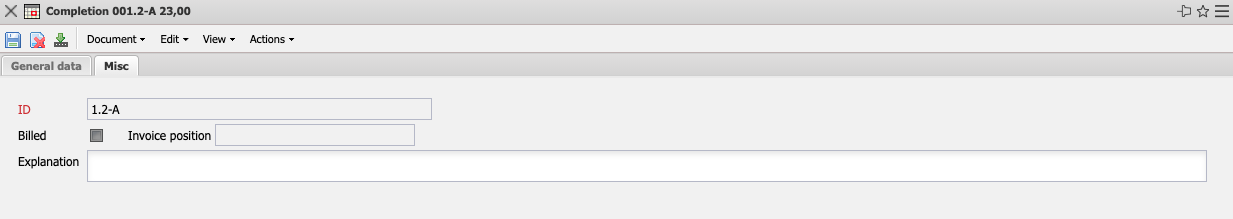 • ID: This field displays the number of the completion. The number is automatically assigned alphabetically by the system.
