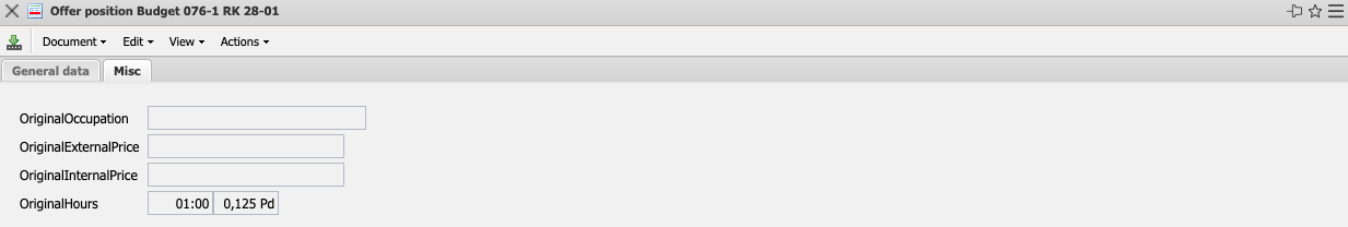 The mask offer position contains the reference to the offer as well as information about the position, description, number of hours or units, the external and internal amount of the offer position and the cost element. The offer value is determined from the amounts of the individual offer items.