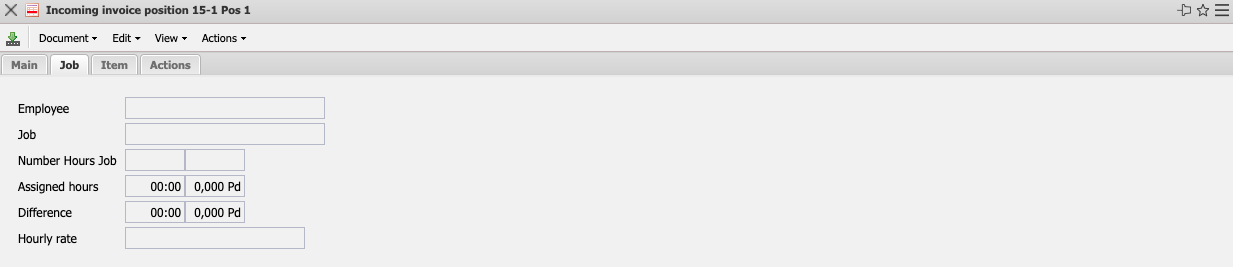 - Amount external: Is the product of the number of hours of the work package and the hourly rate stored for the work package in the incoming invoice item.