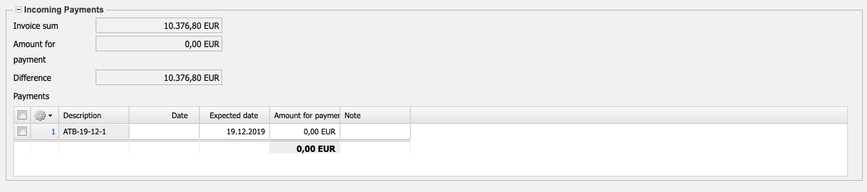 - Amount for Payment: Here you can see the already paid amount of the invoice.