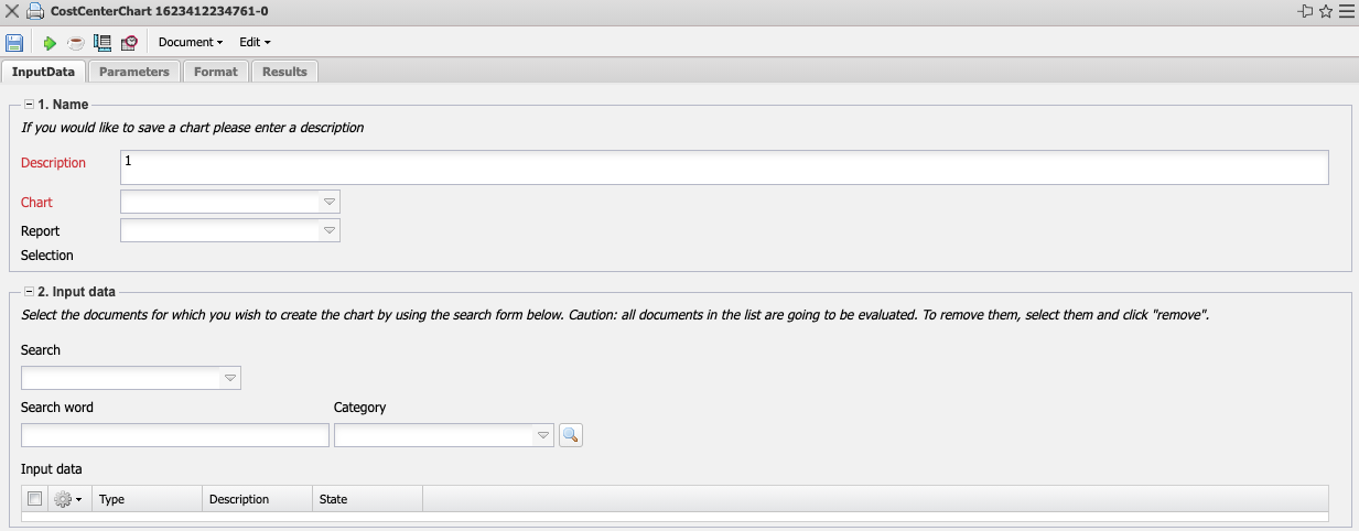 - Input Data: The selected selection criteria for the evaluation are listed below this field. These input data can come from the professional search, the standard search engine or the personal file.