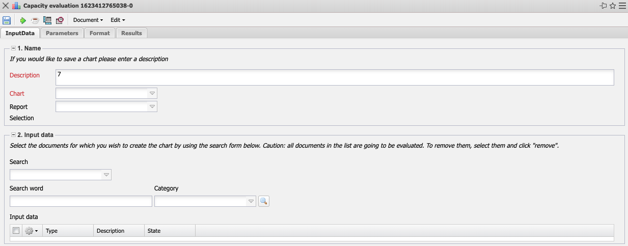 - Input Data: This field lists the selected selection criteria for the evaluation. This input data can come from the professional search, the standard search engine or the personal file.