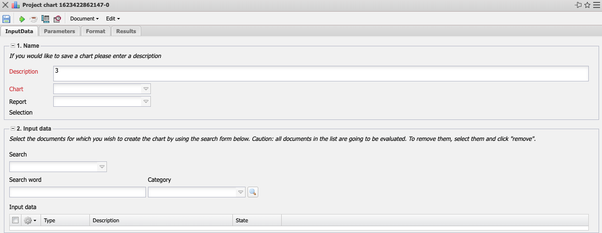 • Input Data: This field lists the selected selection criteria for the evaluation. This input data can come from the professional search, the standard search engine or the personal file.