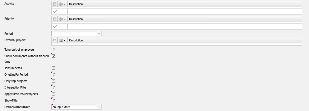 • Filter Employee Unit: This checkbox controls the effectiveness of the selection of units or employees. If the checkbox is not set, the filter is activated. If the checkbox is set, the filter will not filter by the selected units or employees.