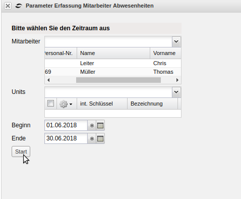 Nun können die entsprechenden Mitarbeiter ausgewählt und der Zeitraum angegeben werden.