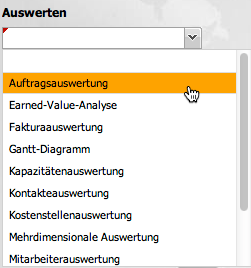Diese Auswahlbox enthält alle Auswertungsmöglichkeiten und listet diese alphabetisch auf.