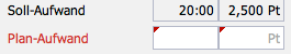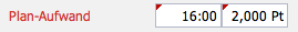 Hier wird der Plan-Aufwand in Personentagen eingetragen (2 Pt) und das System ergänzt die Stunden (16:00).