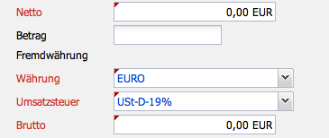 Bei dieser Art von Feldern kann die Eingabe entweder nur in Hauswährung (hier EURO) …