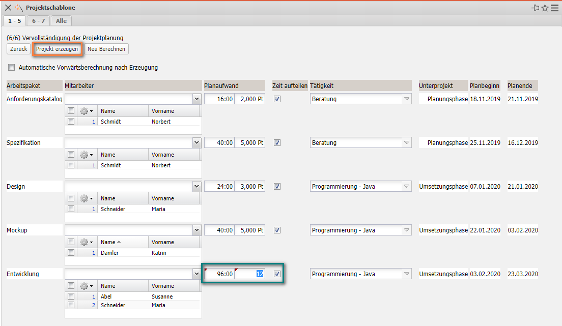6.1 Projektschablonen