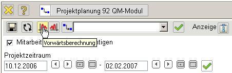 Bei der Vorwärtsrechnung werden die frühestmöglichen Beginn- und Endzeiten der einzelnen Arbeitspakete ermittelt. Das System bestimmt jetzt selbständig die frühesten Beginn- und Enddaten der Arbeitspakete und verschiebt diese Daten.