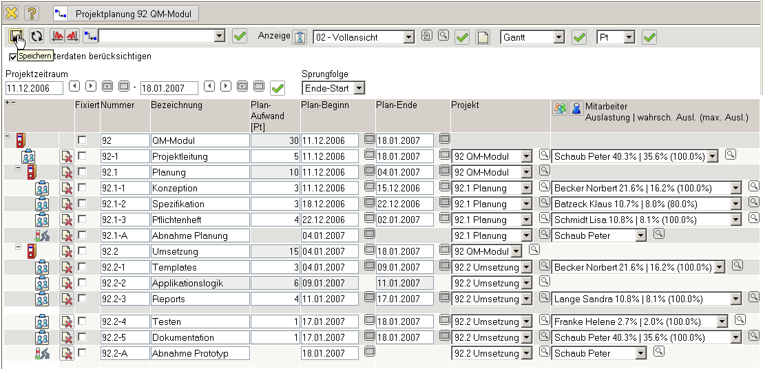 … wird der Projektplan abgespeichert.