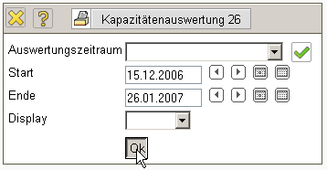 Nach Auswahl einer Auswertung, hier die Auslastungsübersicht III, wird ein Zwischendialog geöffnet, der …