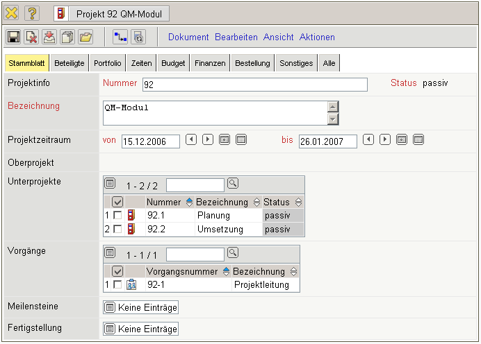 4.2.02 Projektdaten verwalten (Projektplanung - Fortsetzung)