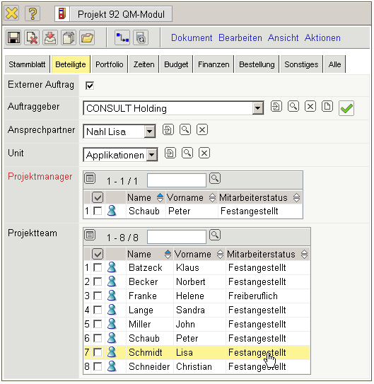 … die Bearbeiter der Aufgaben sind in das Projektteam übertragen worden