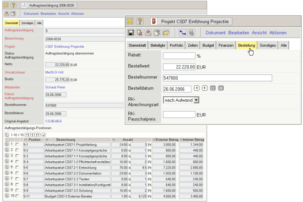 The order form administers the customer’s orders. After accepting an offer, the ordering data can either be entered directly into the project or a confirmation of order is drawn up. This confirmation of order is necessary for projects that are ordered differently than they were offered.