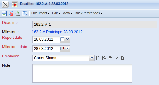 - Employee: This field specifies the editor of the data record (the project employee) who defines the trend date for the selected milestone.