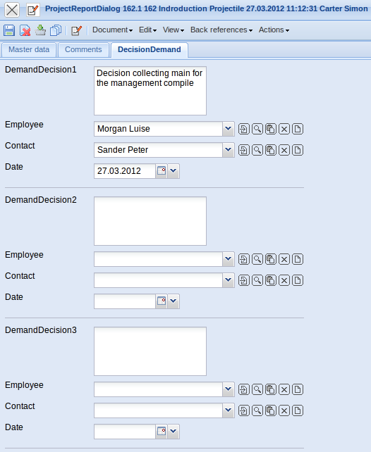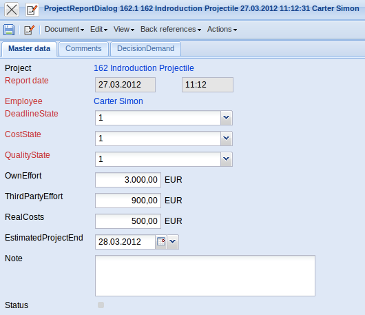 - Project: In this field the project, which was selected at the beginning of the status report put on, is indicated.