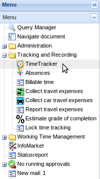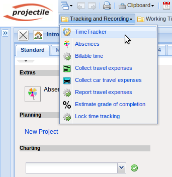 Projectile consist of various quick entries, for example, absence entry (see also chapter 5.08.2 Absence Entry), the functionality “Billable Time” and the entry “Estimate Grade of Completion”.