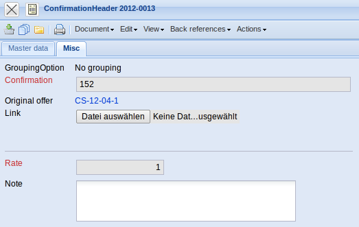 - Original Order: This document link is linked, if applicable, to the last valid offer, if the order confirmation was created through the offer.