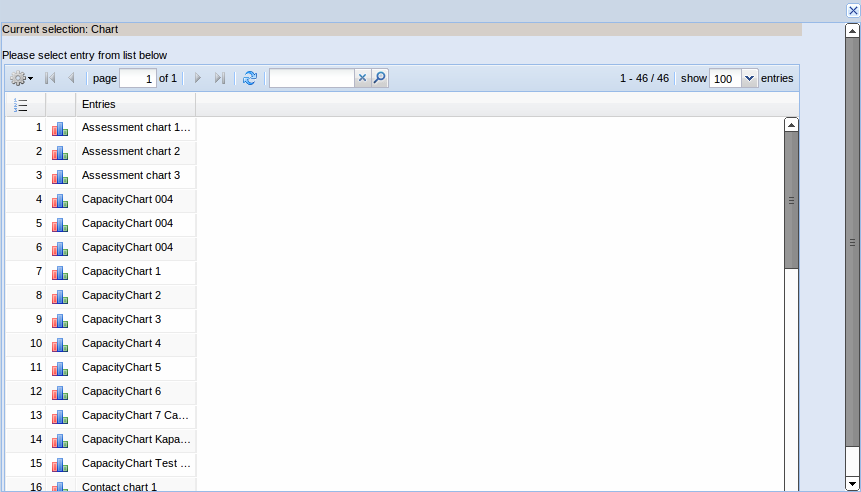 Using the function “Find available documents” all saved charts are displayed …