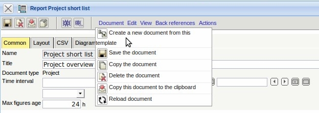 In the following example a graphical chart is created from the tabular project list. First, the basic structure of the report is created again (here by copying the project list).