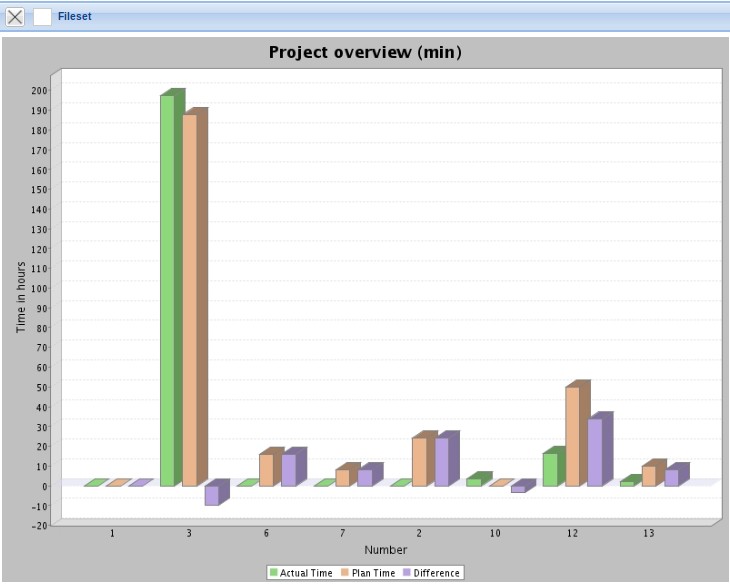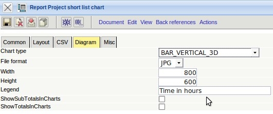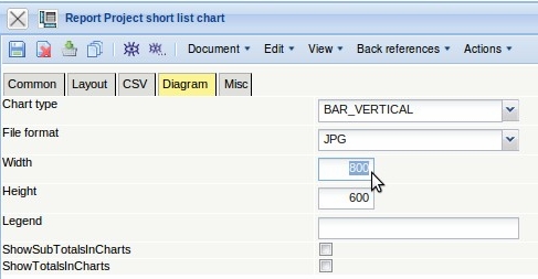 The report can then be further customized in the ReportDesigner. The example is first the index (x axis) renamed into project and is afterwards modified on the tab “Charts”. Here various settings can be made to the graphic.