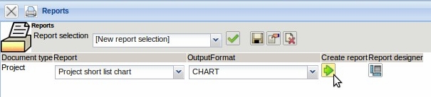 After saving the report it is then closed. The new report and the output format CHART for graphical charts is selected in the ReportMaker.