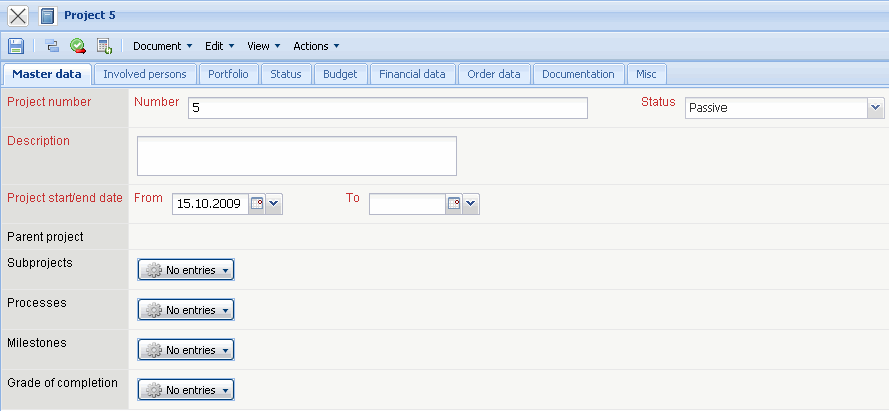 Firstly, a new document is opened with various preset fields from the type “Project”. Next, the project description …
