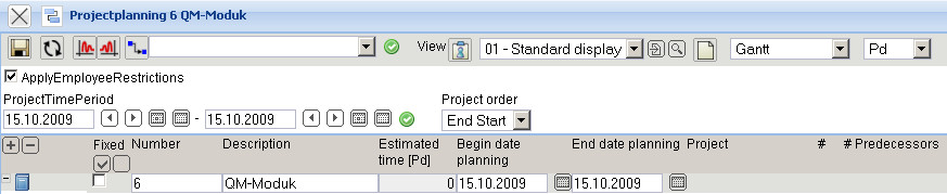 Under the function toolbar is the option “Apply Employee Restrictions” for the forwards and backwards calculation. If this option is marked, the system considers the estimated project time and working time of the employee.