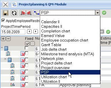 … as well as buttons for integrated charts in the system (Gantt, project structure plan, a simplified network plan, …).