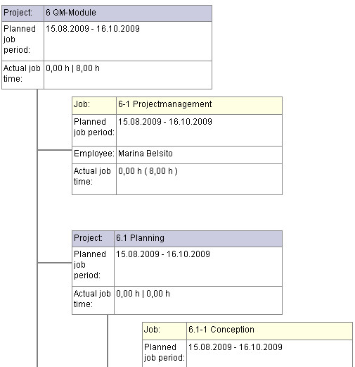 … with the “PSP” chart. The work breakdown structure in Projectile presents the relationship of the project and the sub-project with the corresponding jobs. The most important planned values and actual values in the project structure are displayed here: