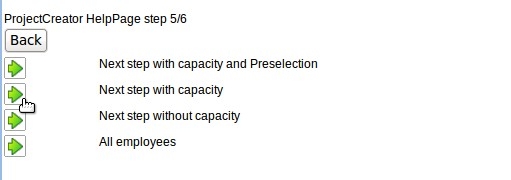 The option “with capacity and pre-selection” displays all employees for all jobs in the next dialogue step, who have the appropriate skills and preselects the employee with the least utilised capacity in the planned time span. The option “with capacity” displays all employees with the appropriate skill and their utilised capacity into the given time span. The option “without capacity” only considers the skill management and ignores the utilisation capacity. The last option “all employees” ignores the utilisation capacity and the skill management.