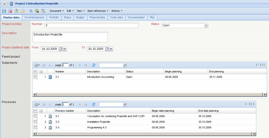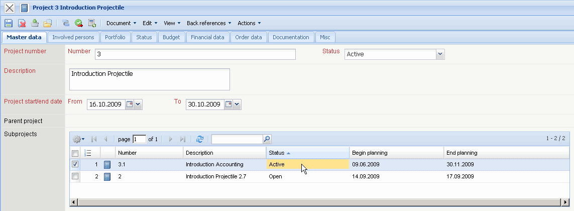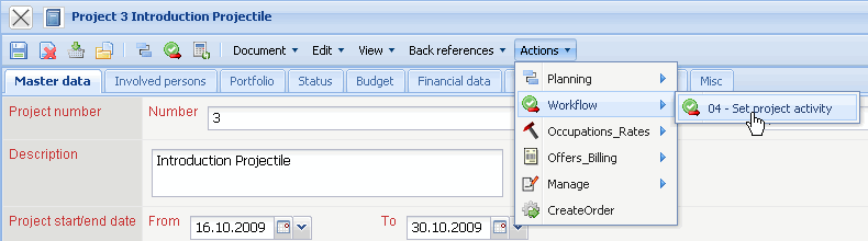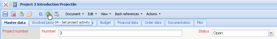 When the project is completely planned and ordered, it must be activated. This can be done by using the action “set project status”. This action changes the status of the complete project structure (including all the sub-projects).