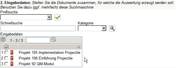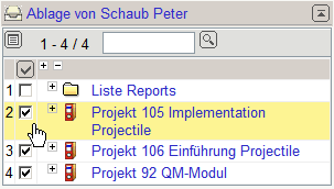 Im ersten Beispiel werden als Selektionskriterien für die Eingabedaten drei Projekte aus der persönlichen Ablage ausgewählt. Diese Projekte werden in der Ablage markiert, …