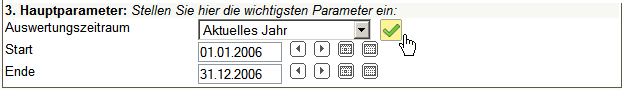 Im zweiten Teil (2. Eingabedaten) werden die Eingabedaten der Auswertung bestimmt. Im dritten Teil (3. Hauptkriterien) können die Eingabedaten zeitlich eingeschränkt werden.