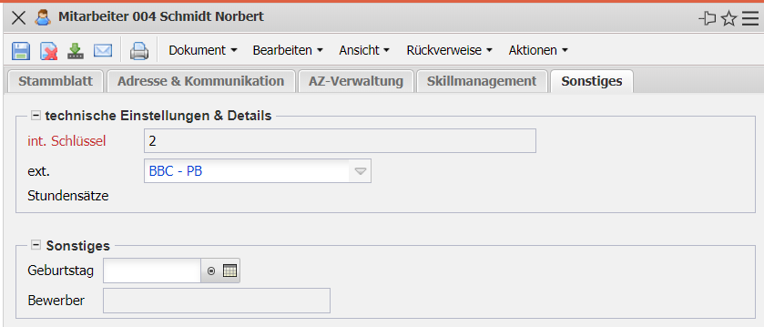 - Geburtstag: Dieses Feld kennzeichnet den Geburtstag des Mitarbeiters.