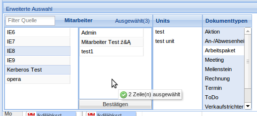 • Wird eine Unit ausgewählt werden die Mitarbeiter der Unit zu Mitarbeiter Auswahl hinzugefügt.