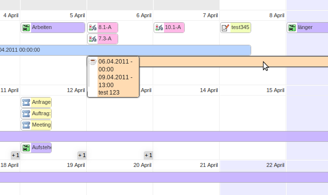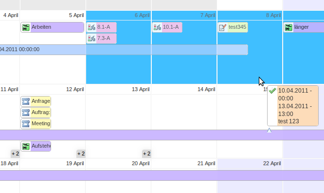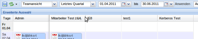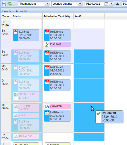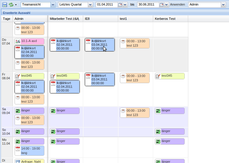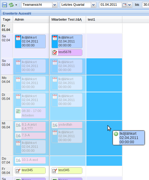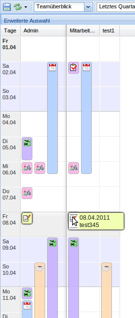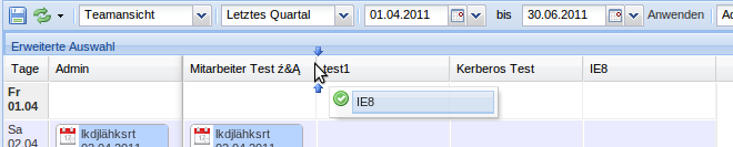 • Jeweils am Anfang und am Ende eines Eintrags kann dieser verlängert/verkürzt werden (Teamüberblick/Monatsansicht)