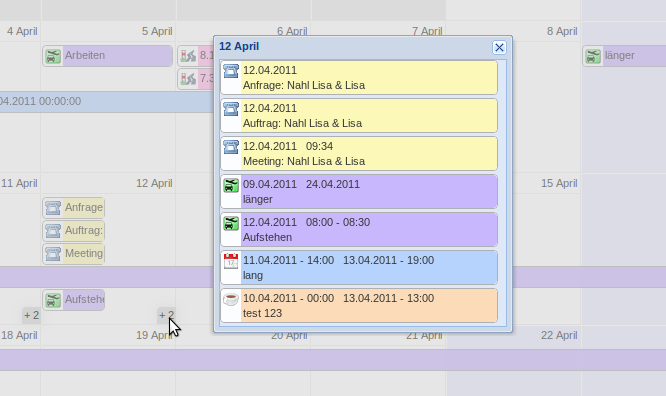 1. Klick auf “+2” → alle Einträge für diesen Tag werden angezeigt