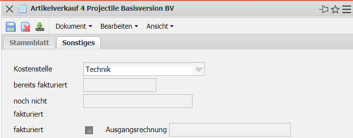 - bereits fakturiert: Diese Feld zeigt an, zu wie viel Prozent der Artikelverkauf bereits fakturiert ist.