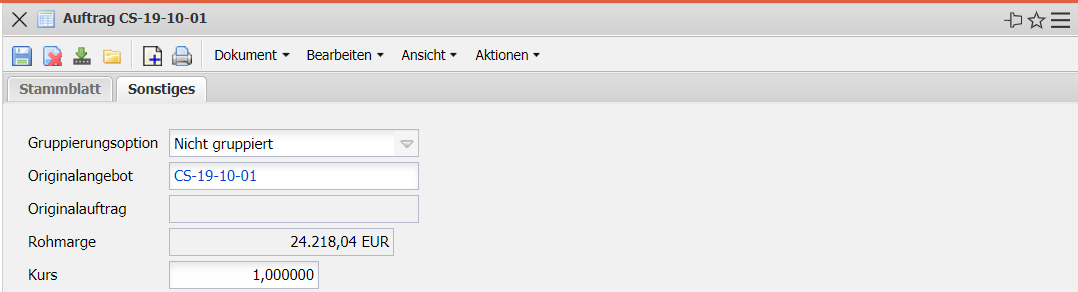 - Originalangebot: Dieser Dokumentlink verlinkt ggf. auf das letzte gültige Angebot, wenn der Auftrag aus einem Angebot erstellt wurde.