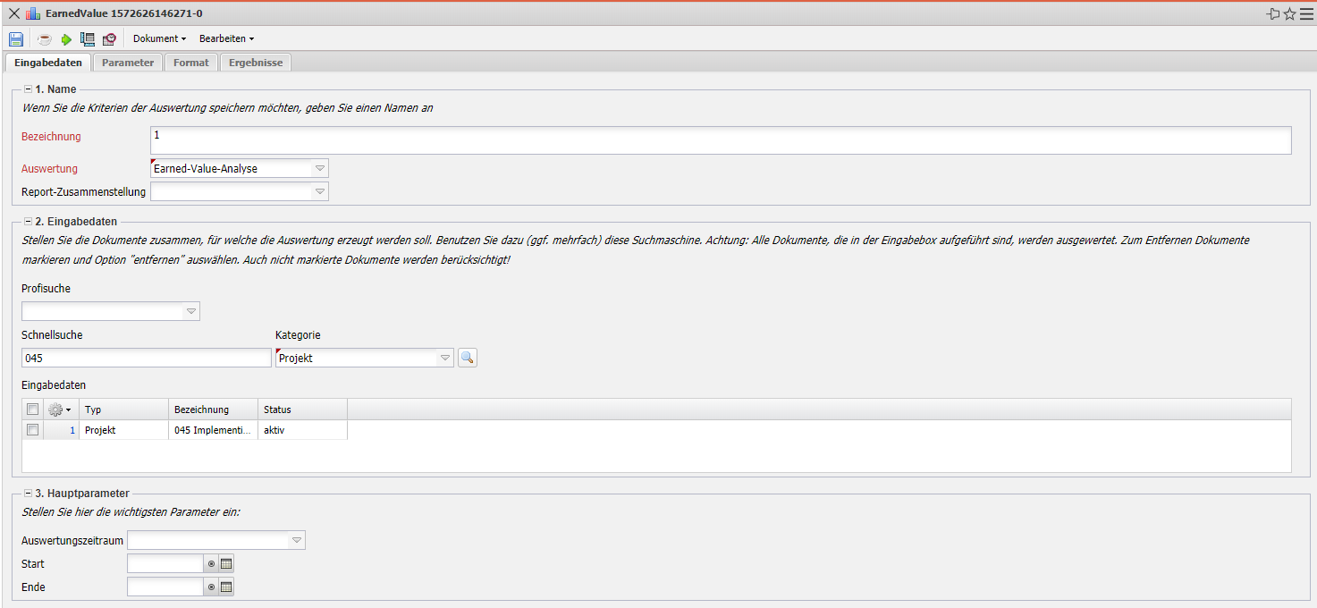 Die Auswertung Earned-Value-Analyse listet für ein Projekt über beliebige Perioden die Plan- und Istaufwände (in Stunden oder Personentagen) sowie den Fertigstellungsgrad (Fortschritt zur Vorperiode) auf. Aus diesen Daten wird der sogenannte Earned Value und weitere Kennzahlen (BCWS, ACWP und BCWP) bestimmt. Das besondere an der Earned Value Analyse ist, dass neben den Plan und den Ist-Werten als dritte Größe der gleichen Einheit der BCWP zur Projektbeurteilung herangezogen wird.