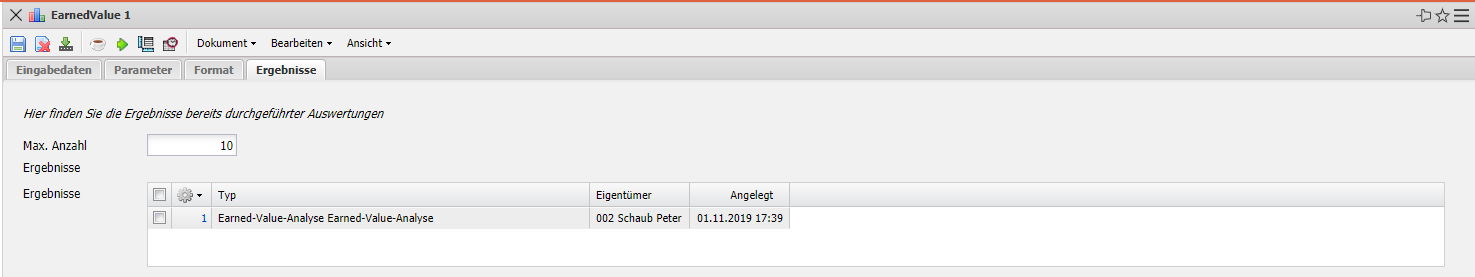 In diesem Reiter befinden sich die maximale Anzahl der Ergebnisse und die Ergebnisse der bereits durchgeführten Auswertungen.