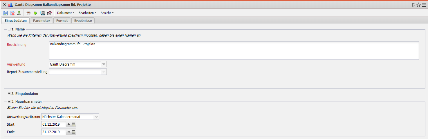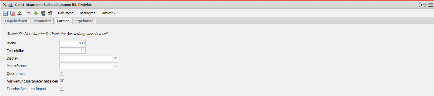 • Periode: Diese Auswahlbox gibt den Zeitraum an, indem das Gantt-Diagramm ausgeführt werden soll.