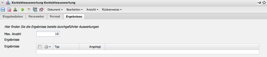 In diesem Reiter befinden sich die maximale Anzahl der Ergebnisse und die Ergebnisse der bereits durchgeführten Auswertungen.