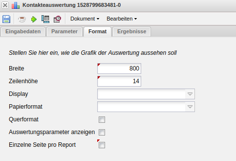 - Auswertungsparameter anzeigen: Hier wird markiert, ob die Auswertungsparameter angezeigt werden.