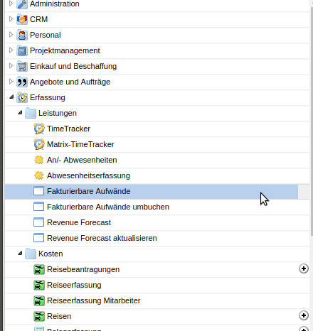 Die fakturierbaren Aufwände können im Menü unter “Erfassung” geöffnet werden.