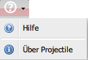 Für einen schnellen Zugriff sind im linken Bereich des Intro-Bildschirmes die wichtigsten Funktionen Projectiles zusammengefasst.