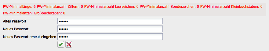 , kann der Benutzer sein eigenes Passwort vergeben oder ändern: