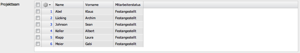 Eine Mehrfachauswahl wird entweder automatisch durch Systemfunktionalitäten oder manuell definiert. Eine solche Systemfunktionalität ist beispielsweise das Projektteam im Dokument Projekt. Hier werden alle Bearbeiter der Arbeitspakete automatisch übertragen.